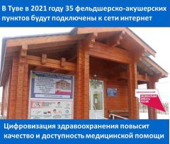 В Туве в рамках федерального проекта «Создание единого цифрового контура в здравоохранении на основе единой государственной информационной системы здравоохранения (ЕГИСЗ)» по нацпроекту “Здравоохранение” в 2019-2020 годах к глобальной сети уже подведены 54 ФАПа. В текущем году доступ к интернету получат еще 35 медпунктов в районах Тувы.